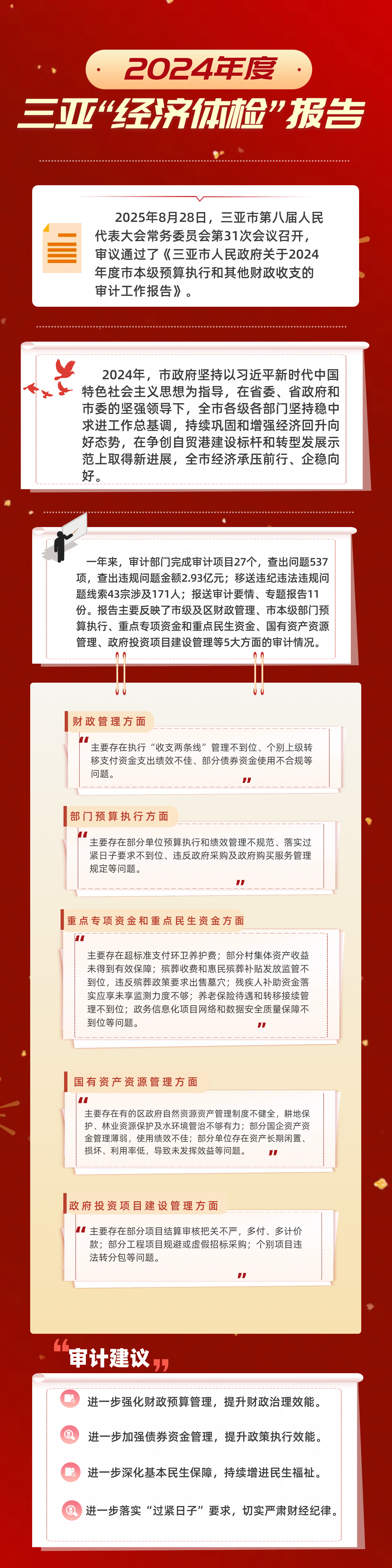 一图读懂三亚市人民政府关于2024年度市本级预算执行和其他财政收支的审计工作报告